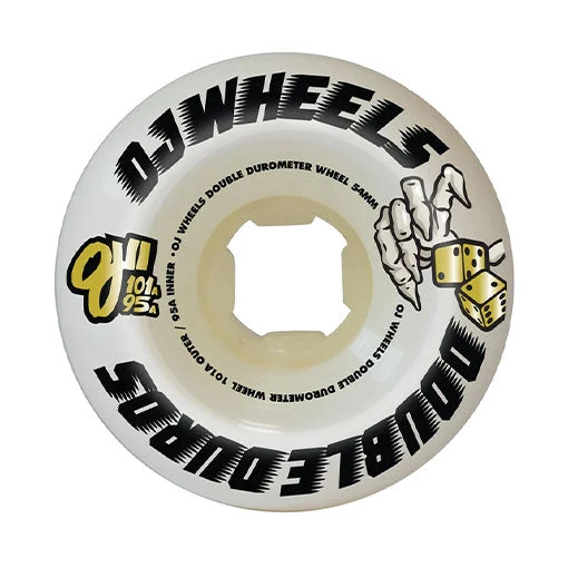 Double Duros are a new approach to wheel design and manufacturing from OJ Wheels featuring a 101a outer durometer wrapped around a 95a inner durometer.